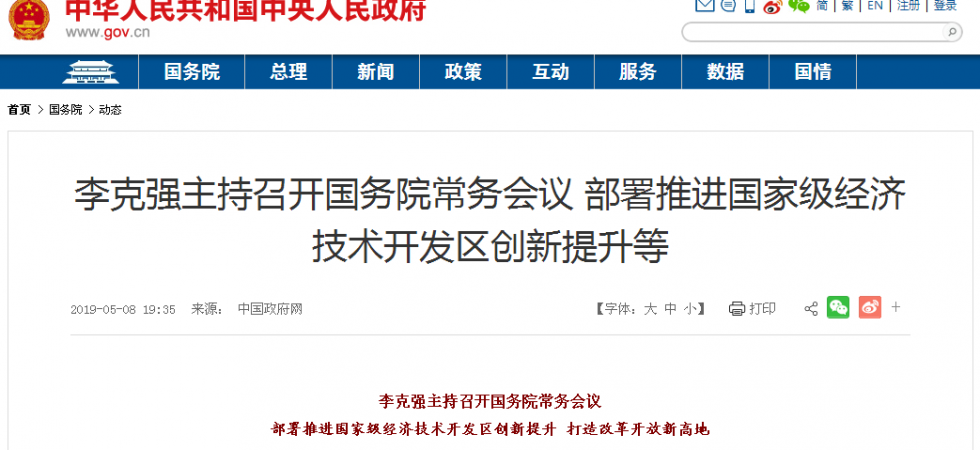 李克強主持召開國務院常務會議 部署推進國家級經濟技術開發區創新提升等